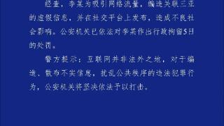 警方通报:行拘5日!女子编造在三亚潜水被拔氧气管