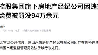 因违规收费,荣盛控股集团旗下房地产经纪公司被罚没94万余元