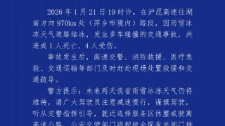 沪昆高速多车碰撞致1死4伤,警方通报
