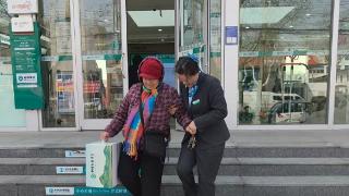 老人上车困难 公交司机起身当“拐杖”
